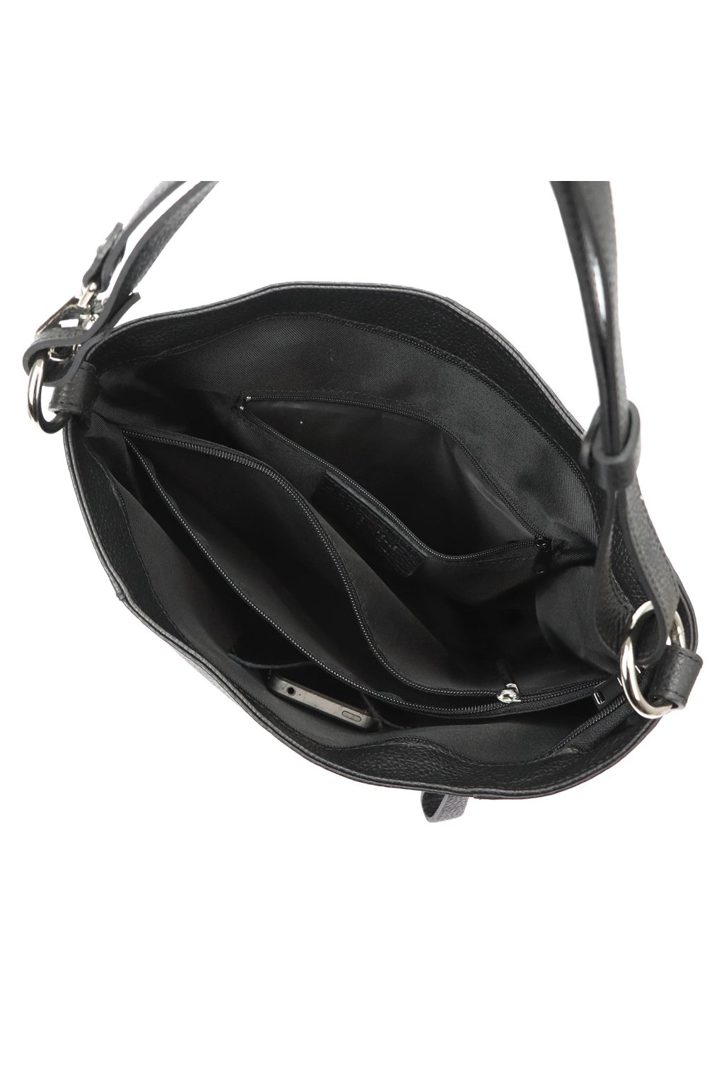 kožená kabelka – elegantní shopper – kabelka přes rameno – MiaMore – klasická černá – kabelka s přihrádkami – praktická taška na každý den – kabelka do práce – stylový městský doplněk