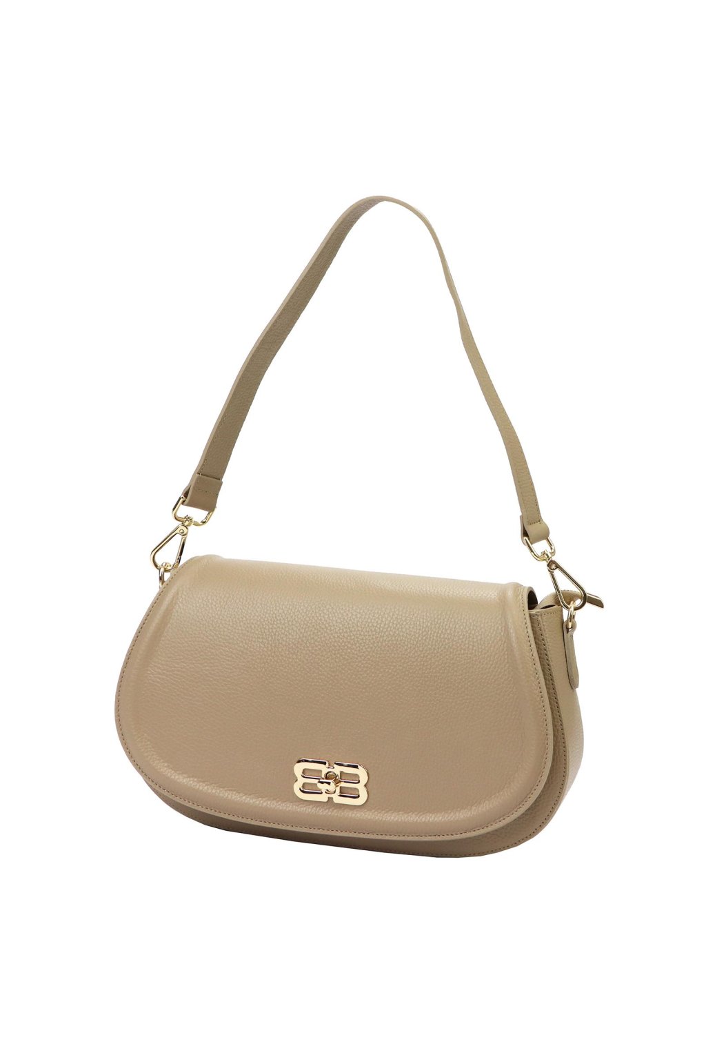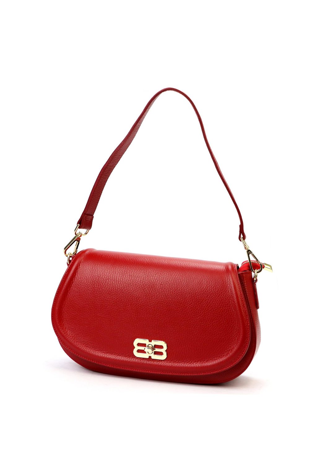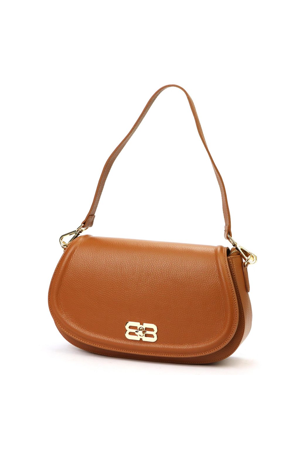 Tato elegantní kabelka z italské přírodní kůže zaujme netradičně zaobleným tvarem a výrazným kovovým logem na klopě. Povrch kůže byl zpracován a barven výhradně pomocí přírodních rostlinných a minerálních činidel, díky čemuž si zachovává přirozený vzhled i dlouhou životnost. Jednokomorové vnitřní uspořádání s podšívkou doplňuje kapsa na zip a přihrádka na telefon. Klopa se zavírá klasickým otočným zapínáním. Kabelku lze nosit v ruce, v ohbí paže nebo přes rameno díky připojitelnému popruhu. Perfektní doplněk pro ženy, které chtějí vyniknout.