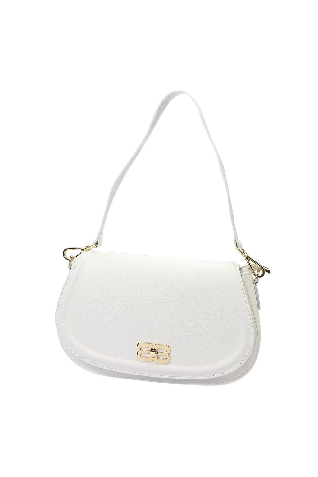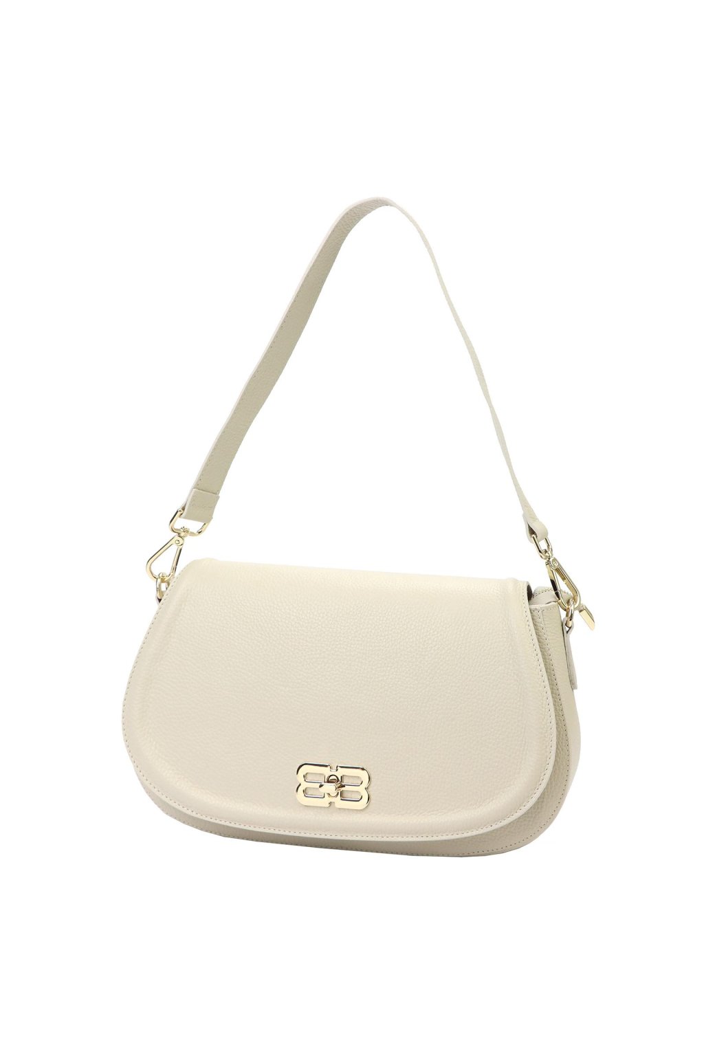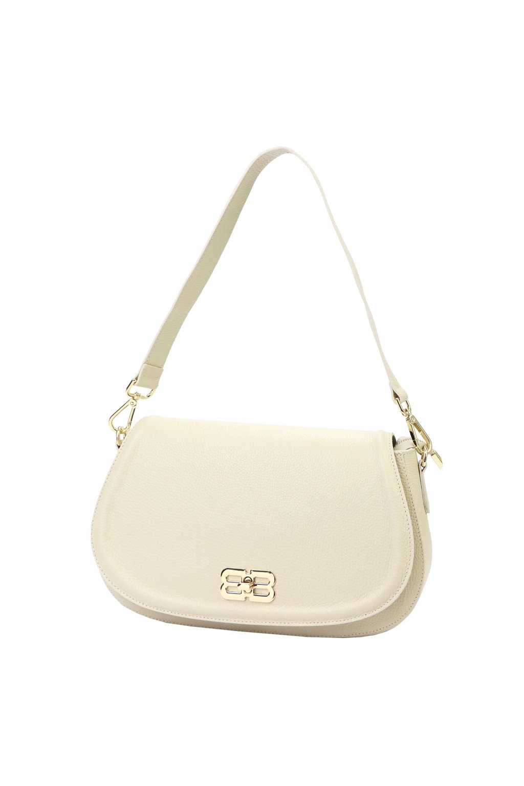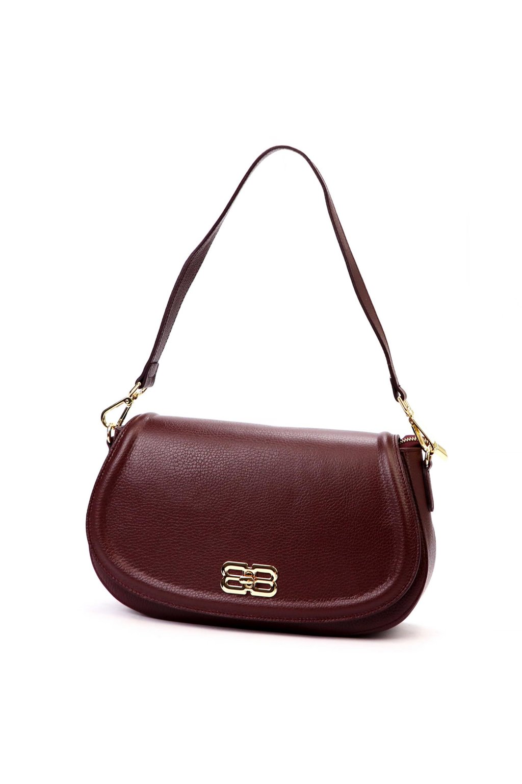 Tato elegantní kabelka z italské přírodní kůže zaujme netradičně zaobleným tvarem a výrazným kovovým logem na klopě. Povrch kůže byl zpracován a barven výhradně pomocí přírodních rostlinných a minerálních činidel, díky čemuž si zachovává přirozený vzhled i dlouhou životnost. Jednokomorové vnitřní uspořádání s podšívkou doplňuje kapsa na zip a přihrádka na telefon. Klopa se zavírá klasickým otočným zapínáním. Kabelku lze nosit v ruce, v ohbí paže nebo přes rameno díky připojitelnému popruhu. Perfektní doplněk pro ženy, které chtějí vyniknout.