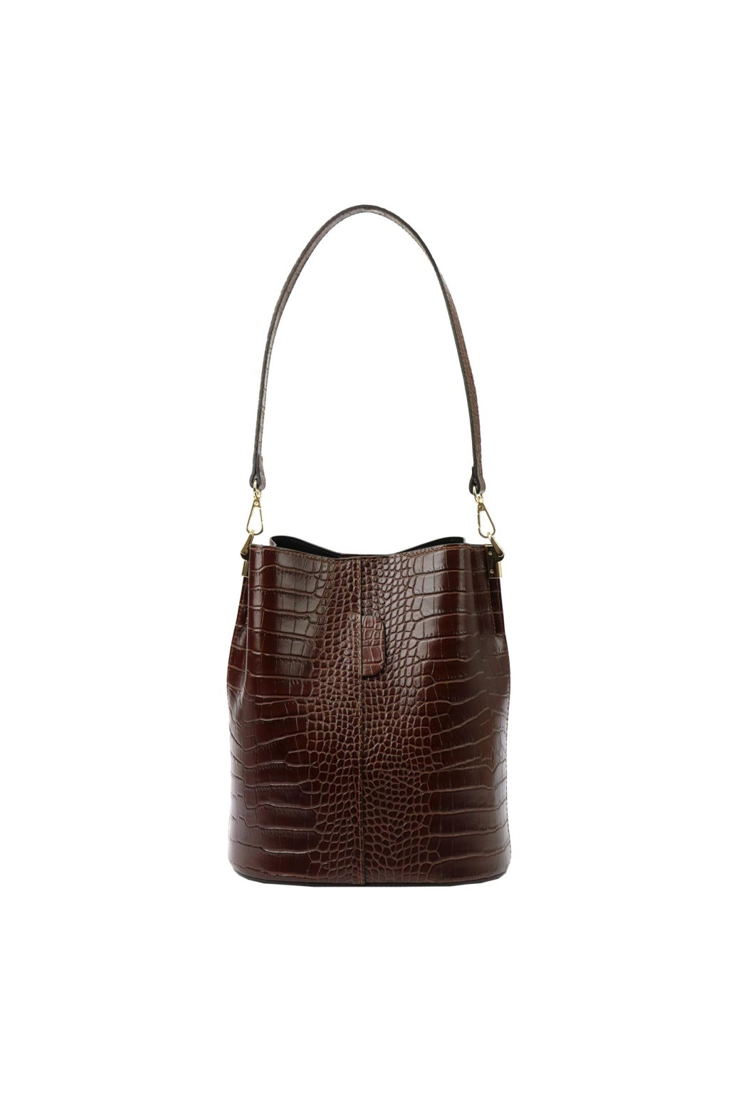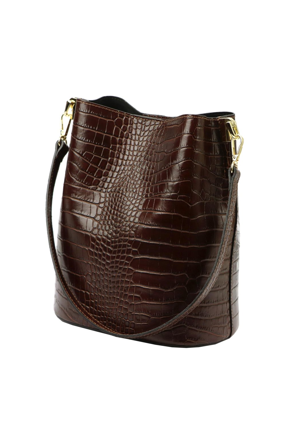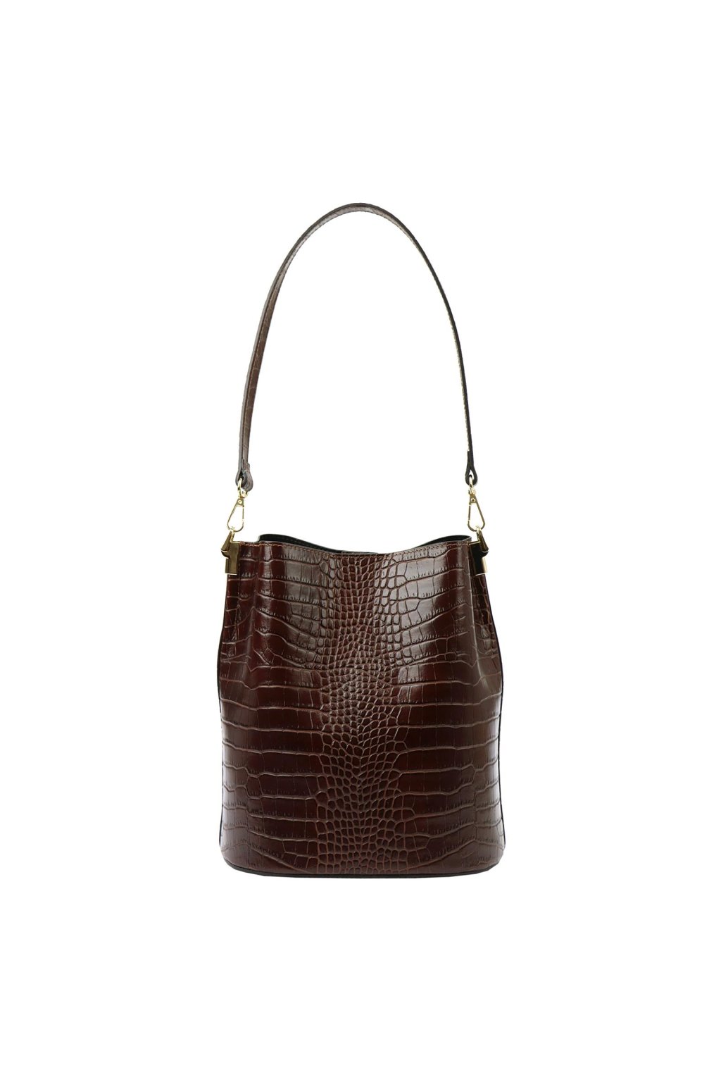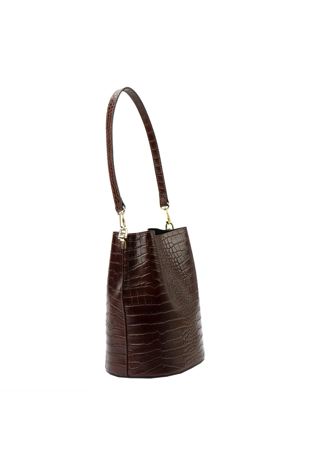 Tato elegantní malá kabelka je vyrobena z vysoce kvalitní, přírodní italské kůže, reliéfně zpracované do vzoru krokodýlí kůže. Barvena a činěna výhradně přírodními tříslovinami a pigmenty rostlinného a minerálního původu. Nabízí praktické řešení v podobě jednokomorové konstrukce s vnitřní podšívkovou kapsou na zip, která prostor rozděluje. Díky pevnému oválnému dnu kabelka drží tvar i při větším zatížení. Zapínání je řešeno magnetickým drukem. Délka ucha umožňuje pohodlné nošení přes rameno.