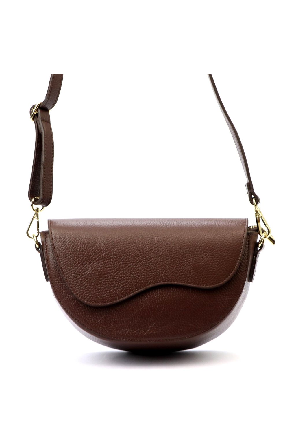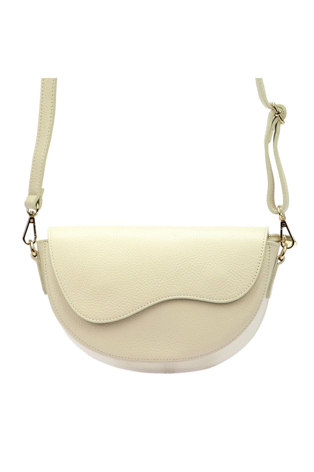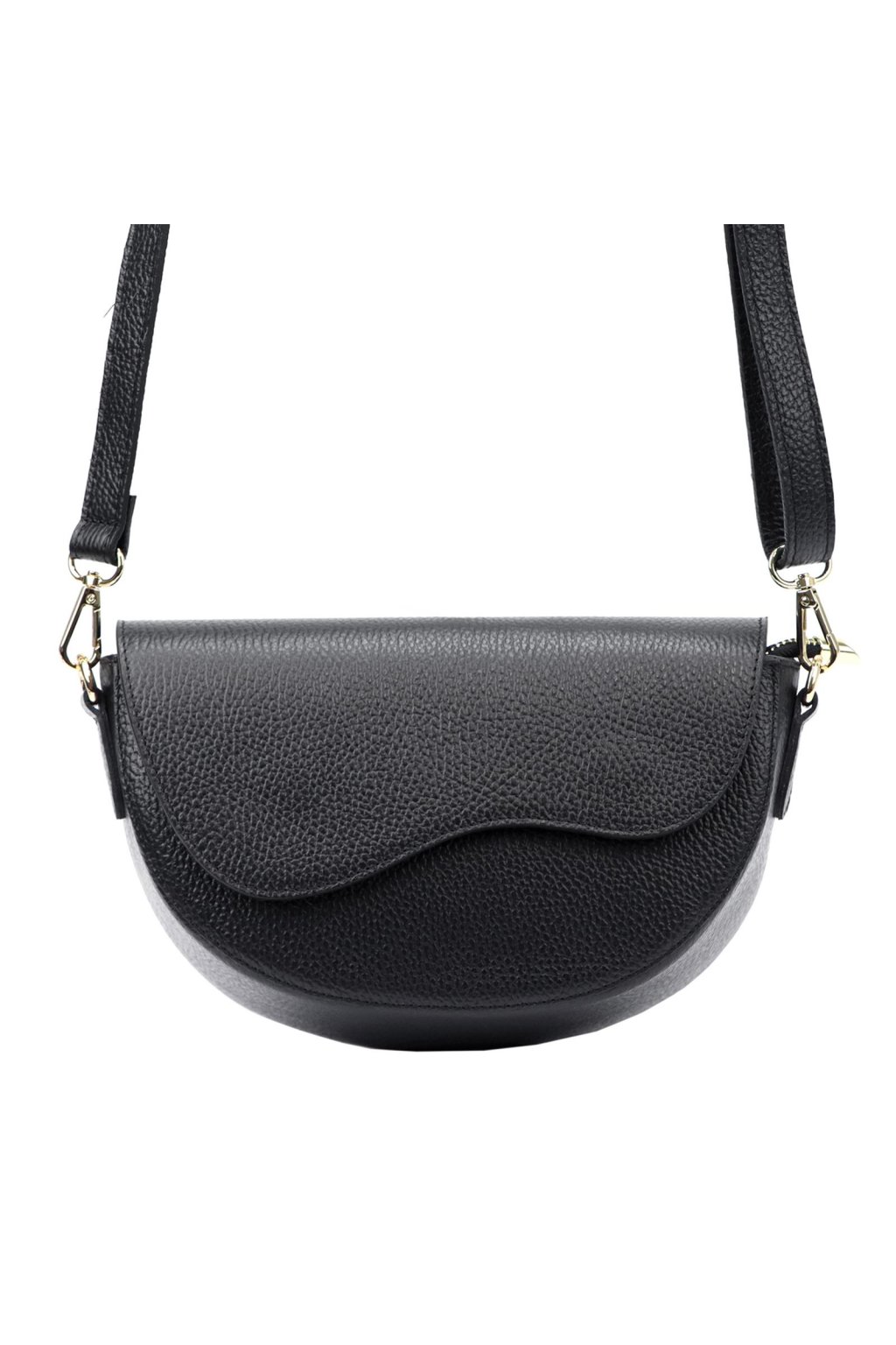 Tato elegantní kabelka z přírodní, jemně zrněné lícové kůže vyniká svým originálním tvarem a vlnitou klopou. Uvnitř nabízí přehledný jednokomorový prostor s podšívkou a praktickou kapsičkou na zip. Bezpečné zavírání zajišťuje kovový zip a dvojitý magnet pod klopou. Nastavitelný dlouhý popruh umožňuje nošení na rameni i pohodlně crossbody.