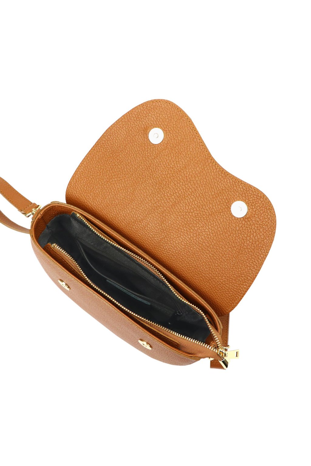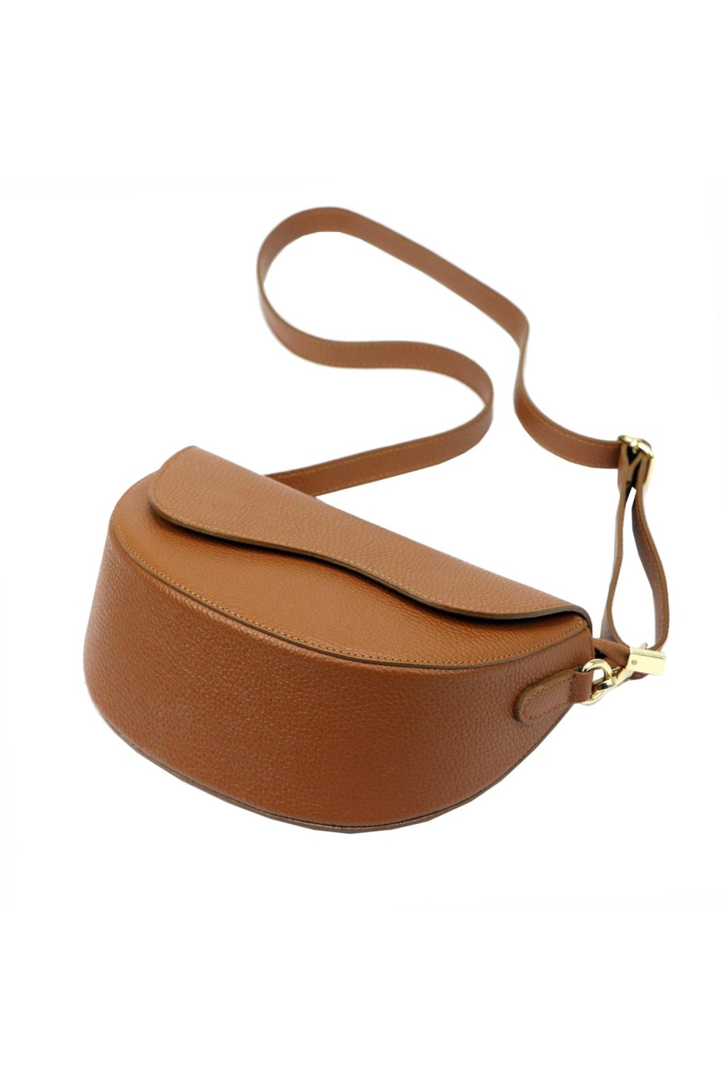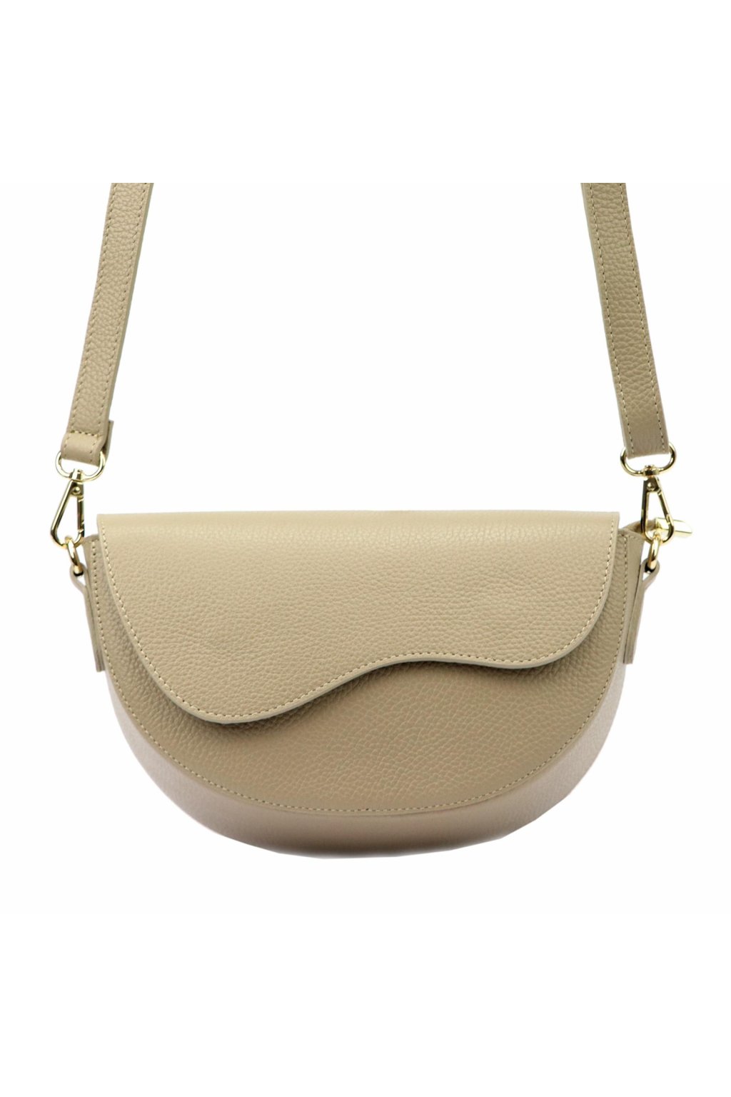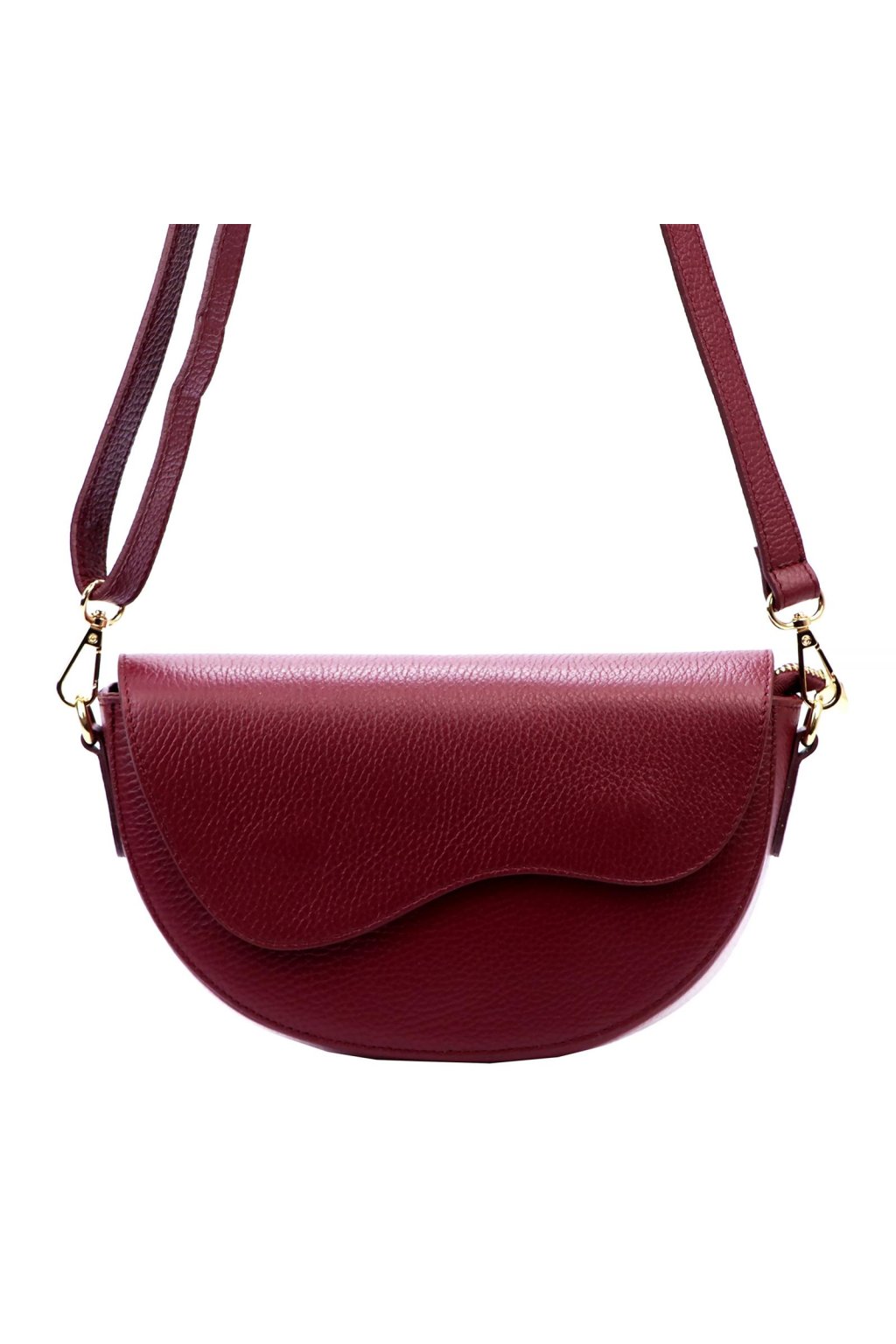 Tato elegantní kabelka z přírodní, jemně zrněné lícové kůže vyniká svým originálním tvarem a vlnitou klopou. Uvnitř nabízí přehledný jednokomorový prostor s podšívkou a praktickou kapsičkou na zip. Bezpečné zavírání zajišťuje kovový zip a dvojitý magnet pod klopou. Nastavitelný dlouhý popruh umožňuje nošení na rameni i pohodlně crossbody.