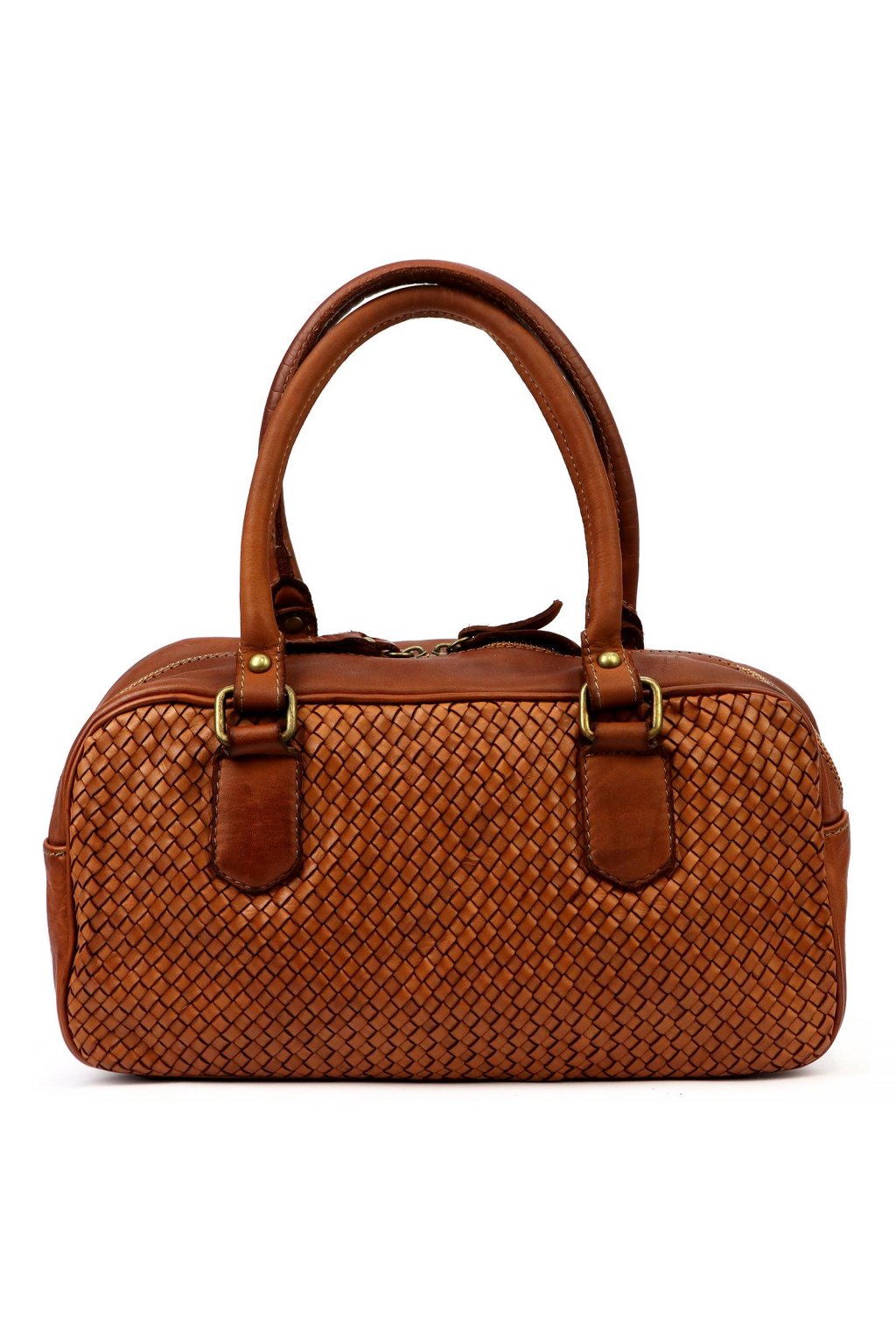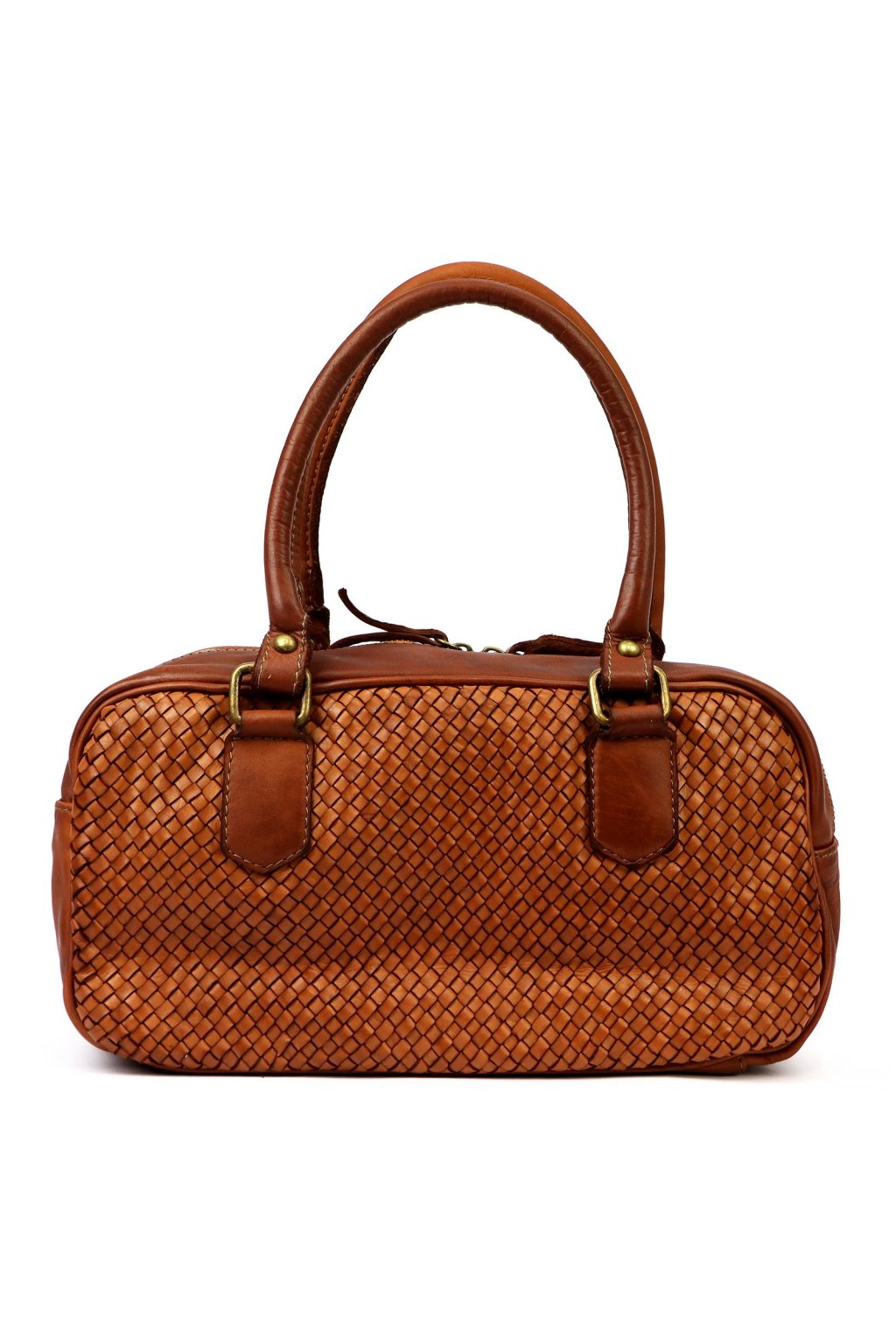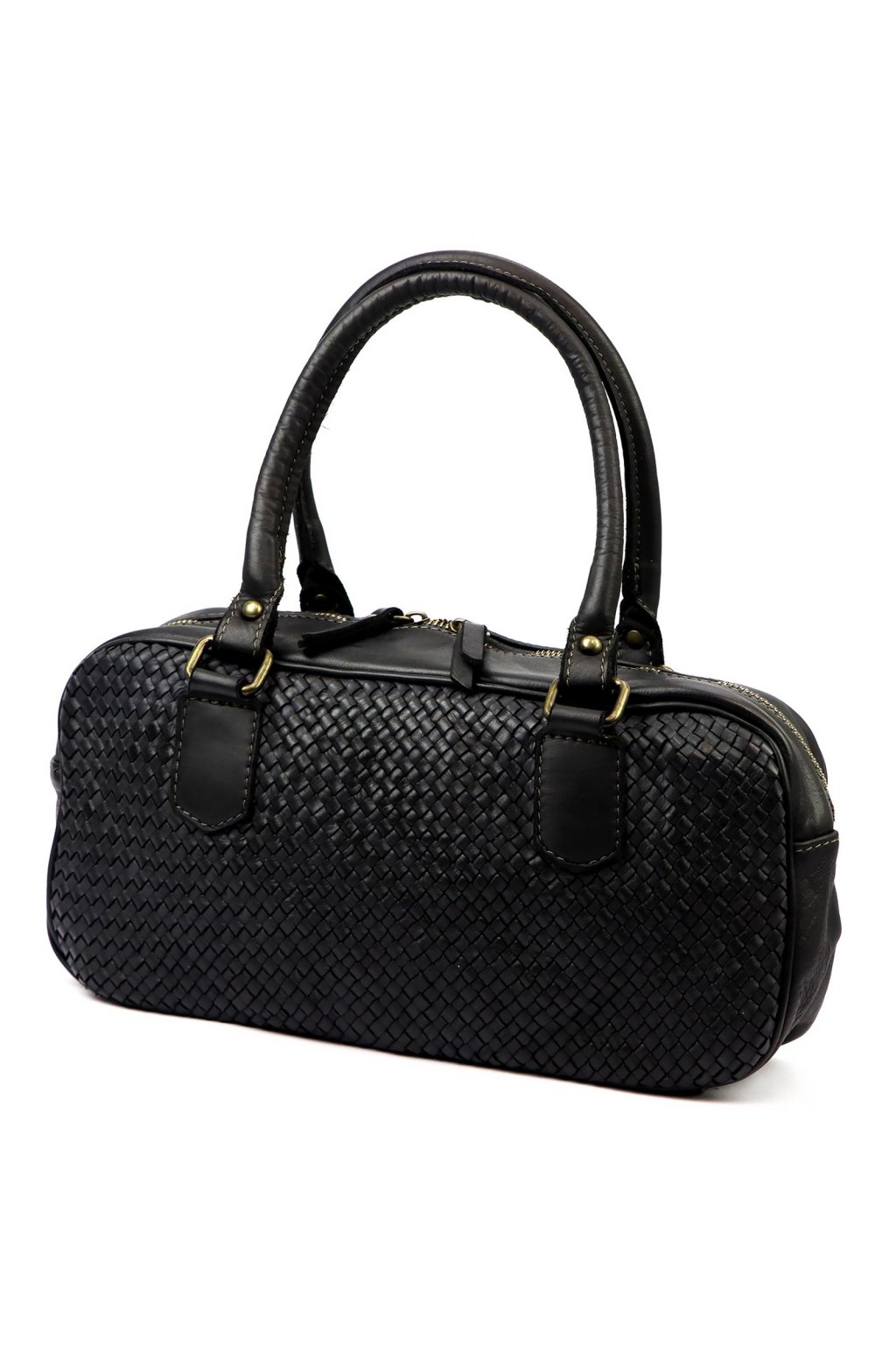 kabelka s pleteným povrchem – pevná ucha – kompaktní tvar – elegantní doplněk – denní nošení – ruční zpracování – přírodní kůže – praktická taška – uzavírání na zip