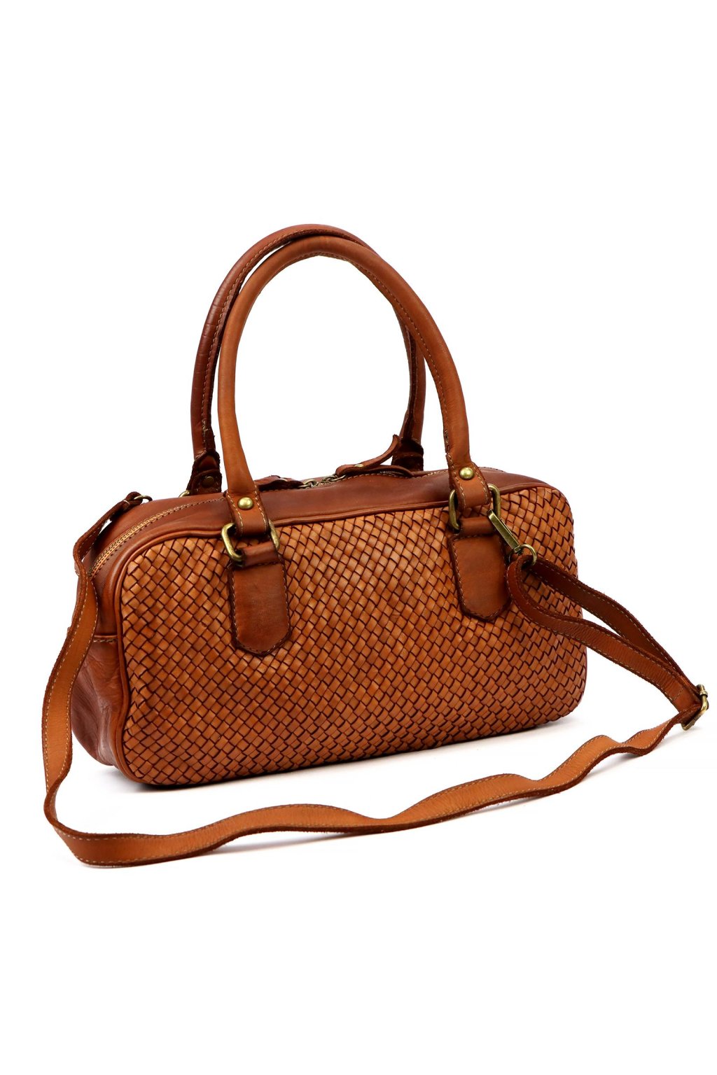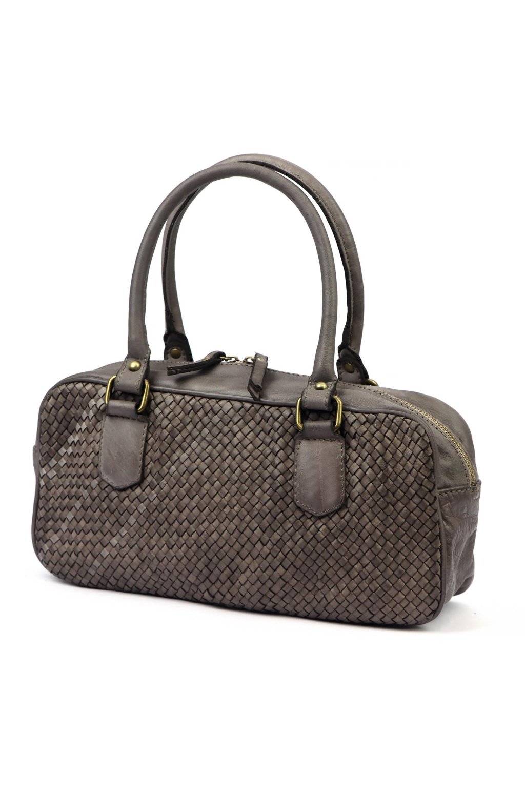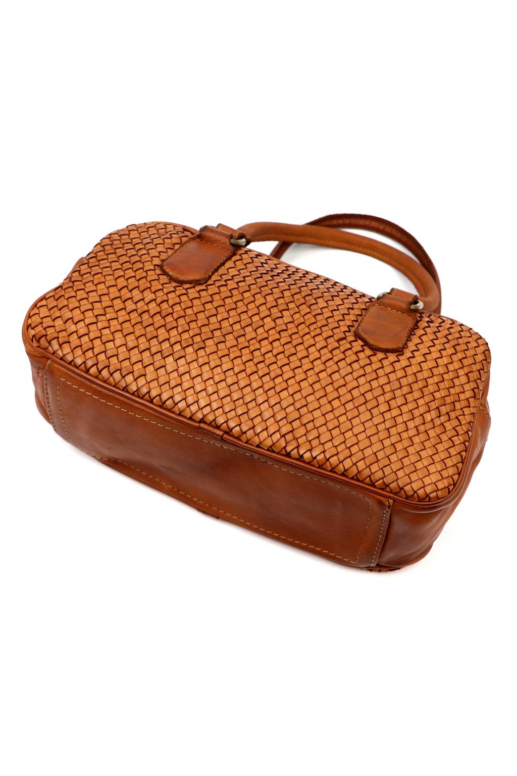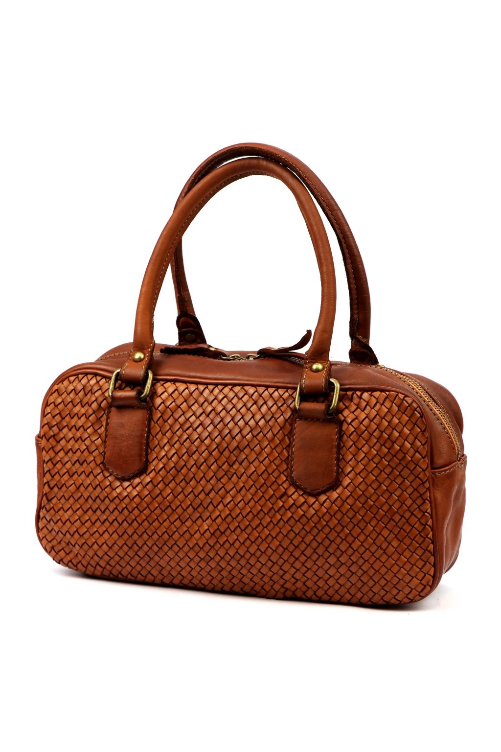 kabelka s pleteným povrchem – pevná ucha – kompaktní tvar – elegantní doplněk – denní nošení – ruční zpracování – přírodní kůže – praktická taška – uzavírání na zip