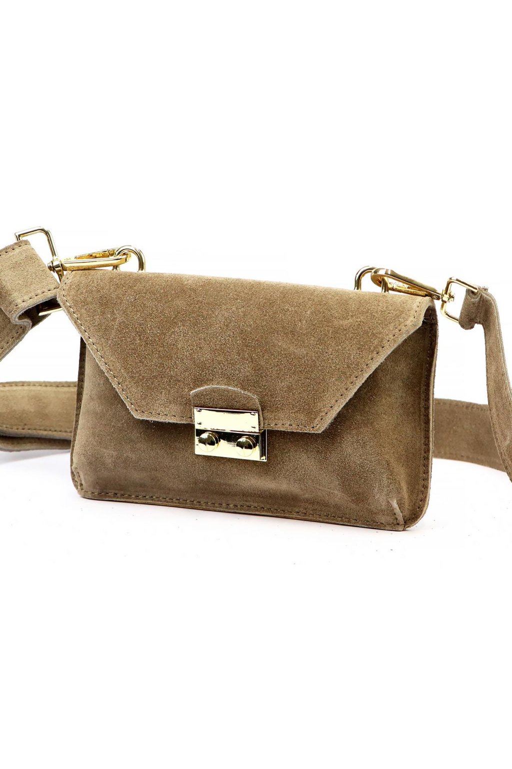 dámská semišová ledvinka – elegantní ledvinka s kovovým zapínáním – stylová mini kabelka do pasu – hnědá ledvinka z broušené kůže – praktická kabelka na cesty – moderní dámská ledvinka – malá crossbody ledvinka