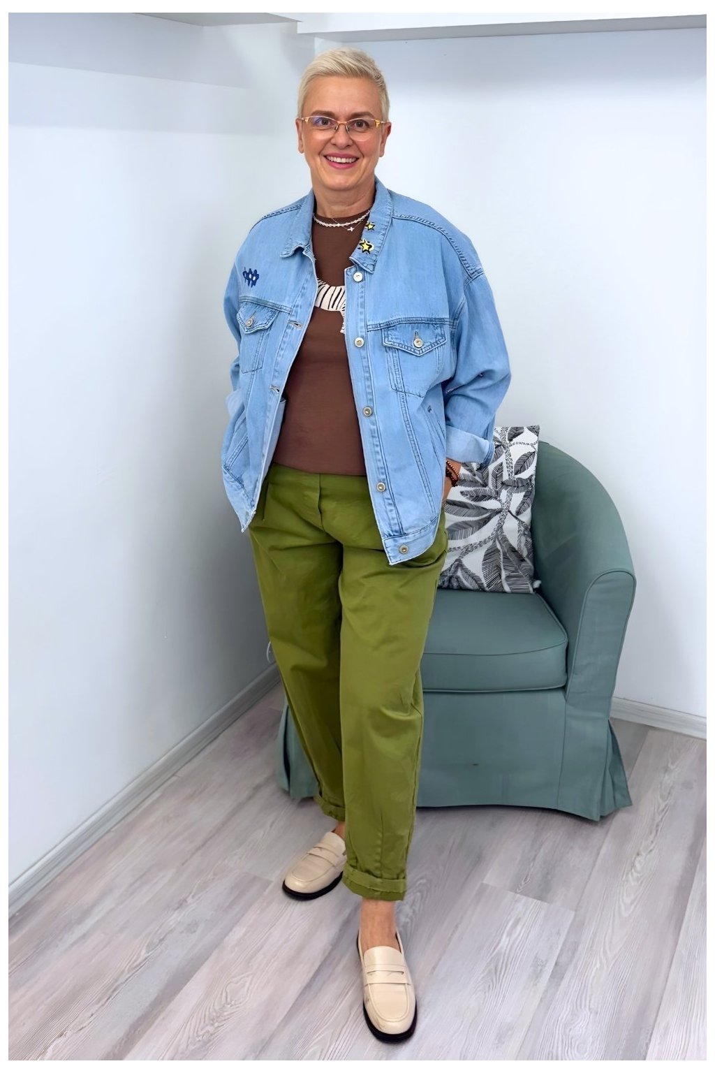 džínová bunda, dámská džíska, oversize bunda, světle modrá džínová bunda, džínová bunda s potiskem, bunda na každý den, pohodlná džínová bunda.