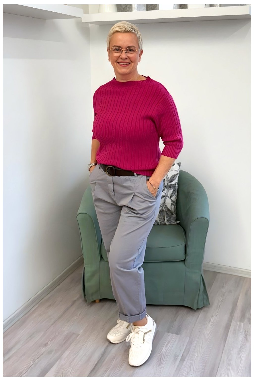 Snadno zkombinujete s klasickými kalhotami, sukní i džínami. Pro elegantnější vzhled doplňte páskem a lodičkami, pro volnější styl stačí tenisky nebo baleríny. Výborně funguje také pod sako nebo kabát. Barevně se krásně kombinuje s neutrálními i kontrastními tóny.