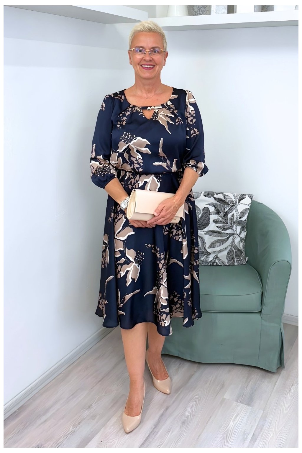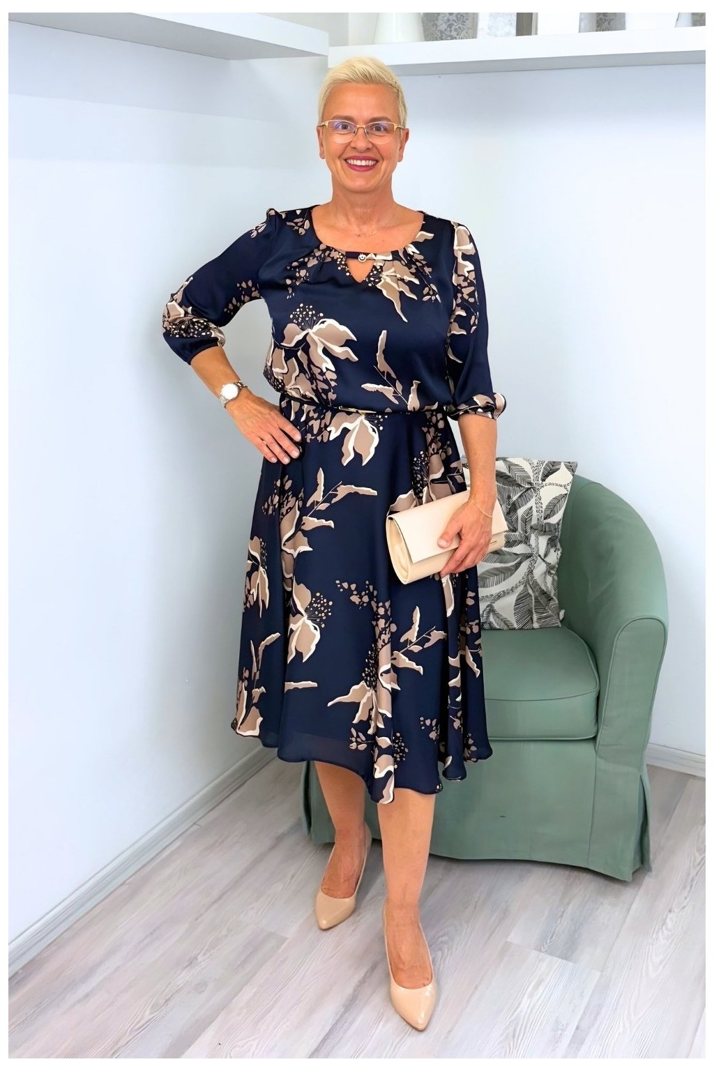 Tmavě modré společenské šaty s béžovými květy Trynite