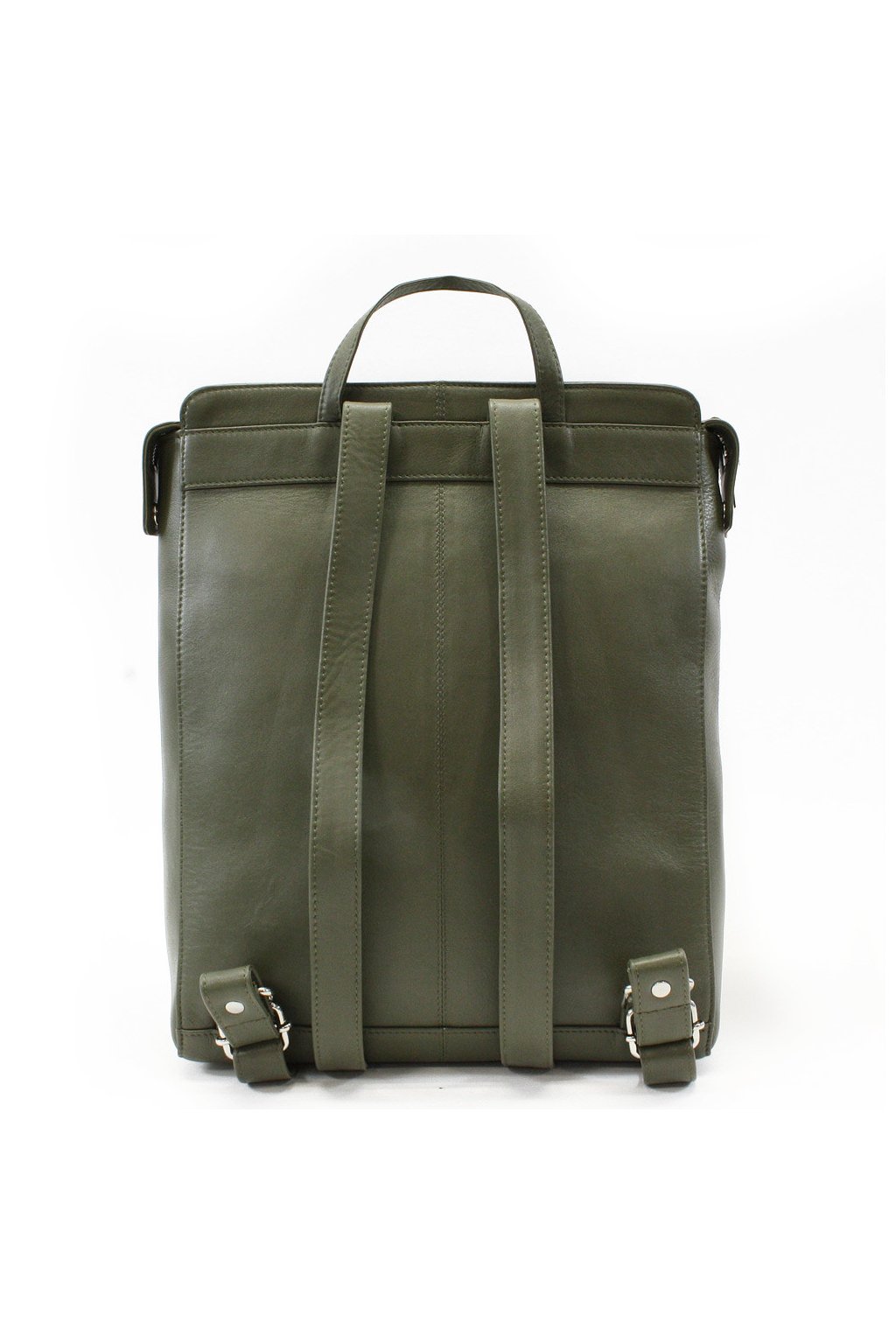 Batoh je vybaven nastavitelnými popruhy pro maximální pohodlí při nošení a bez problémů pojme formát A4. Tmavě zelená barva kůže působí elegantně a moderně, stříbrné kování dodává batohu čistý a nadčasový vzhled.