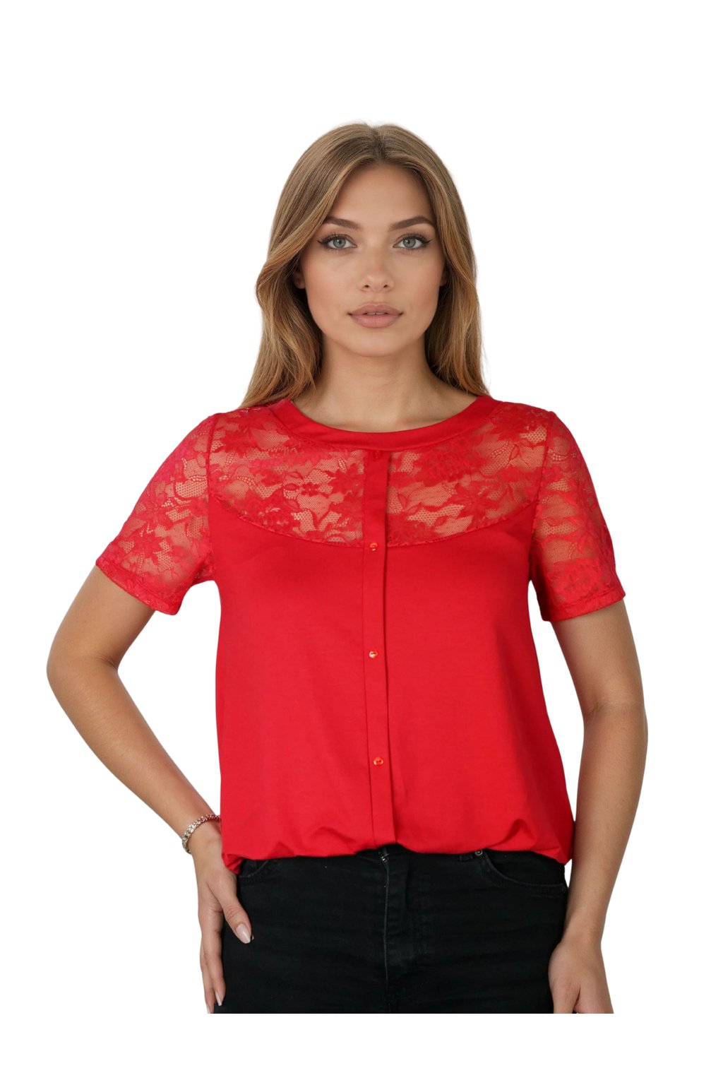 halenka s krajkou, elegantní halenka, dámská halenka, viskózová halenka, halenka do práce, červená halenka, halenka s knoflíčky